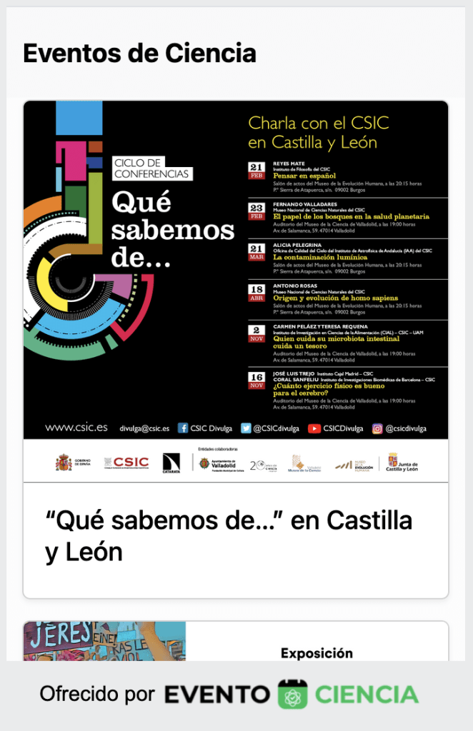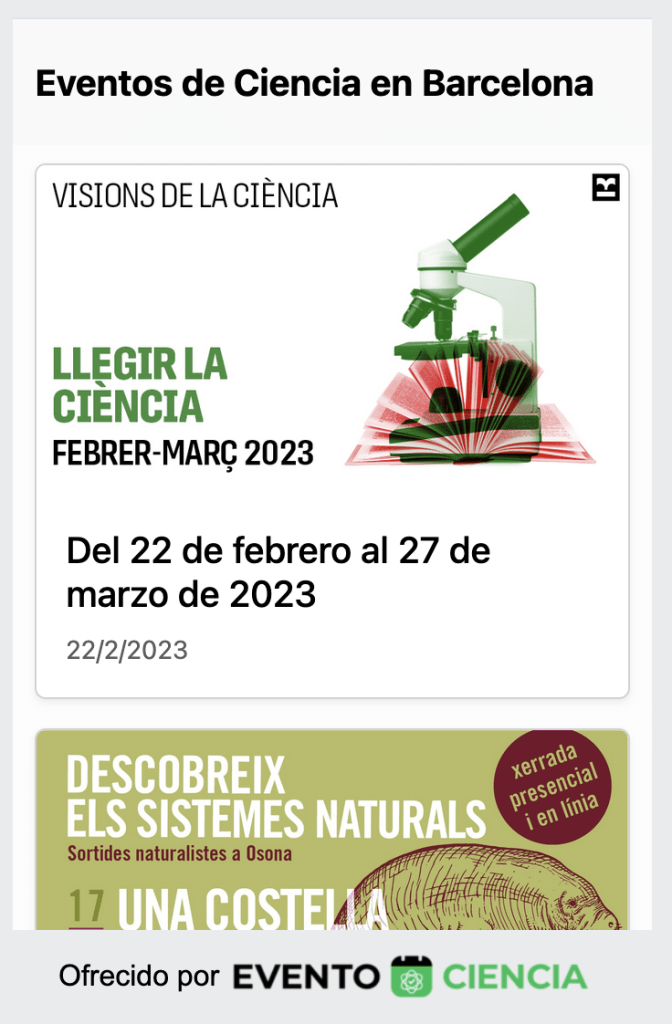 Instrucciones: Copia y pega el código en tu web para obtener todos los eventos de ciencia de España.