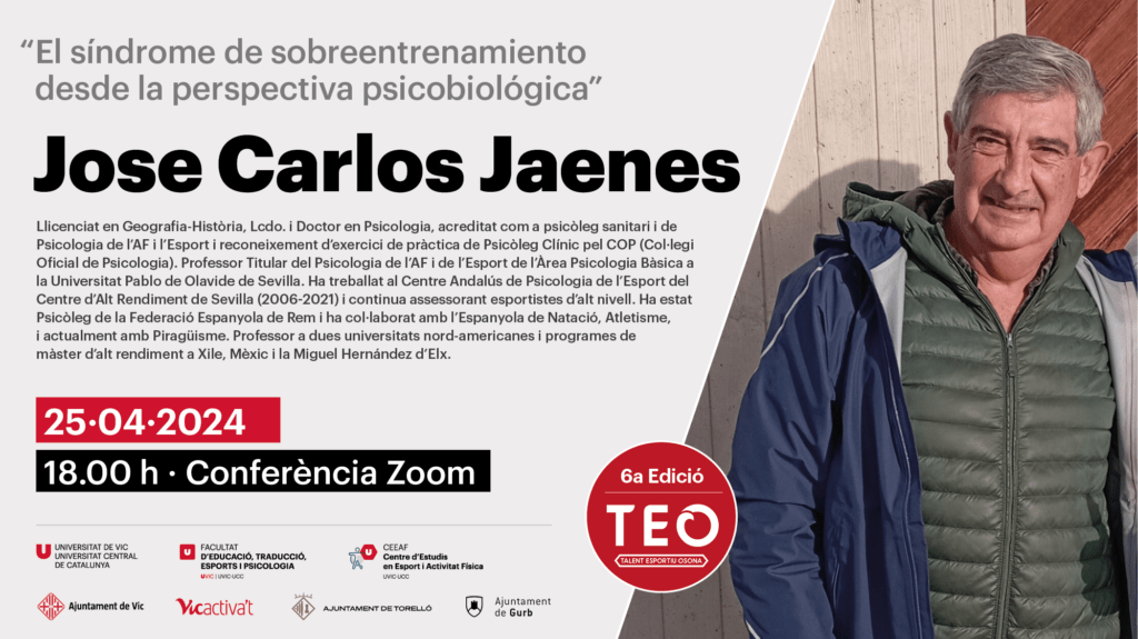 Conferencia enmarcada dentro de la 6ª edición del proyecto de transferencia de conocimiento Talento Deportivo Osona (TEO), a cargo de Jose Carlos Jaenes, Doctor en Psicología y Psicólogo de la Real Federación Española de Piragüismo.