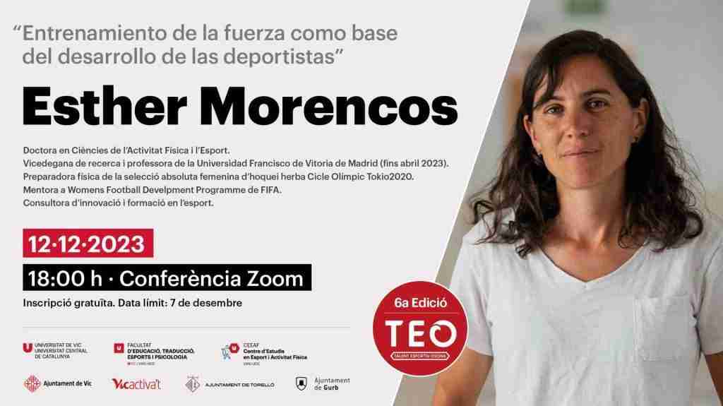 Conferencia enmarcada en la 6ª edición del proyecto de transferencia de conocimiento Talento Deportivo Osona (TEO), a cargo de Esther Morencos, Doctora en Ciencias de la Actividad Física y del Deporte y preparadora física selección absoluta femenina hockey hierba Ciclo Olímpico Tokio 2020.