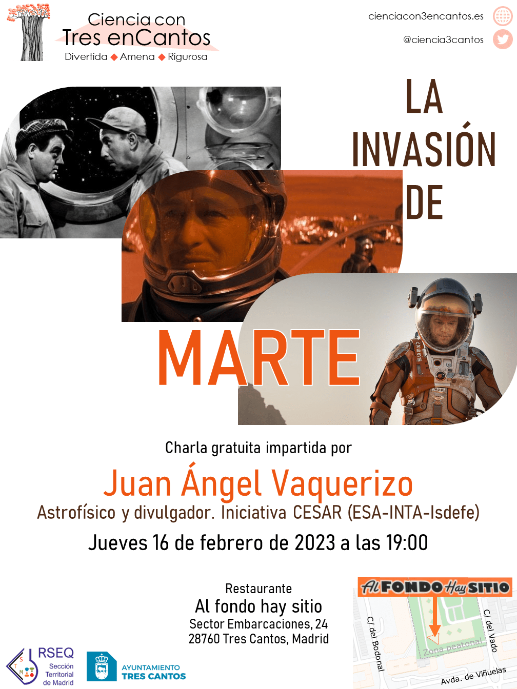 El astrofísico Juan Ángel Vaquerizo hablará de algunos hitos de la exploración del planeta rojo que ya habían sido adelantados por la literatura y el cine, puesto que se trata del planeta que más ha hecho volar la imaginación, los deseos y los temores de la humanidad. Vaquerizo combinará lo que sabemos gracias a la ciencia y la tecnología con todo lo que nos permiten imaginar o soñar las películas de ciencia ficción.